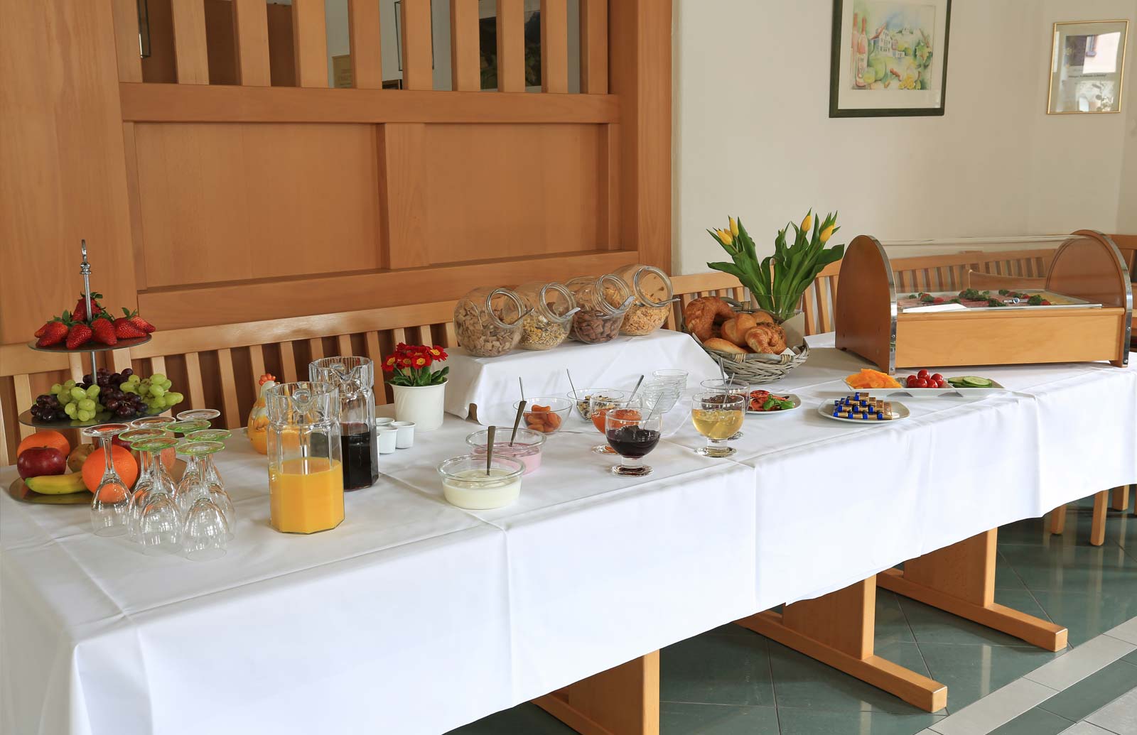 Zur Stärkung des Tages bieten wir Ihnen in unserem Frühstücksraum bei gemütlichem Ambiente ein ausgiebiges Frühstücksbuffet an. Wirelass Lan und ein Kühlschrank auf der Etage mit hauseigenen Weinen steht Ihnen zur Verfügung.