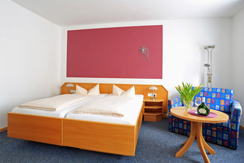 Sie wohnen in liebevoll ausgestattem Doppelzimmer. Helle und freundliche Farben sorgen für Ihre Wohlfühlstimmung und einen angenehmen Aufenthalt. Alle Zimmer sind mit Dusche/WC, TV und Wireless Lan ausgestattet.